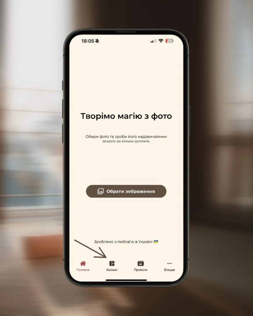 On the main screen at the bottom panel you'll see the "Collages" section — tap it.