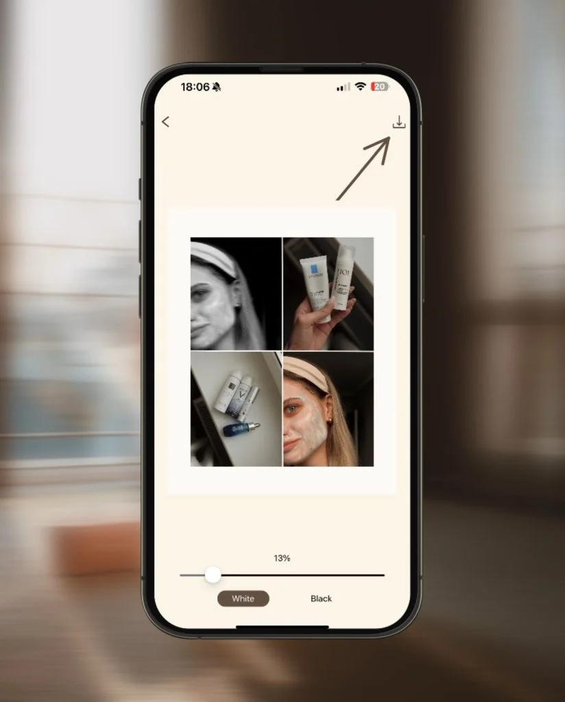 Find the "Save" button in the upper right corner — your collage will immediately appear in your gallery.