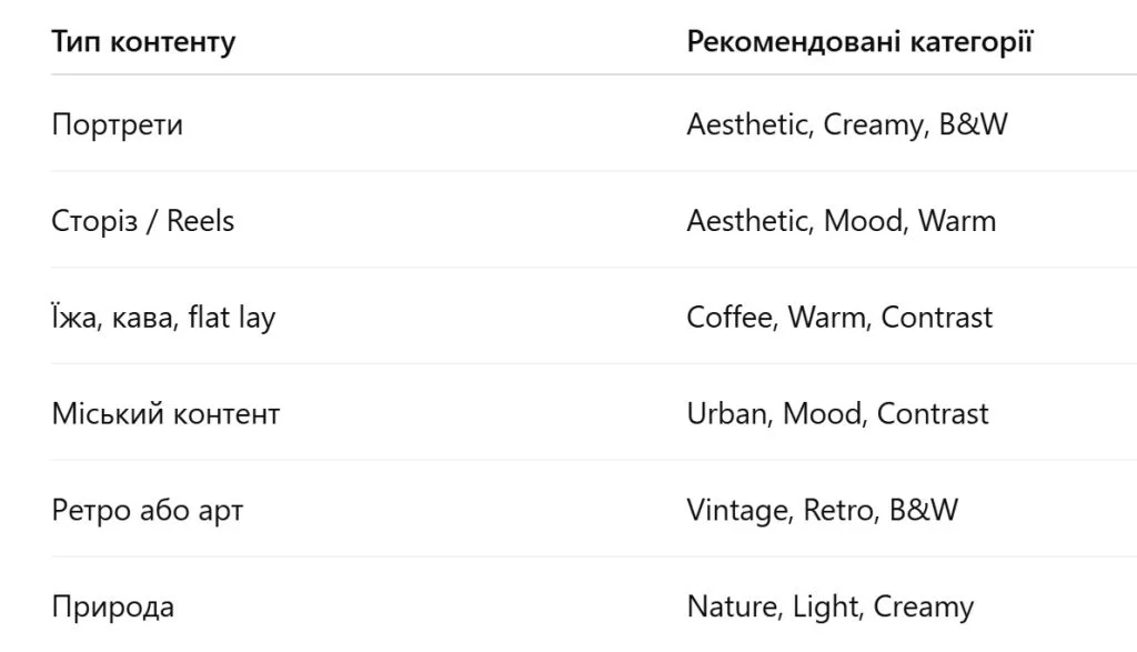 🤎 Aesthetic ☕ Coffee ⚡ Contrast 🌌 Grain ✨ Light 🌙 Mood 📼 Retro 🖤 B&W 🌞 Warm 🌿 Nature 📷 Vintage 🧁 Creamy 🏙 Urban